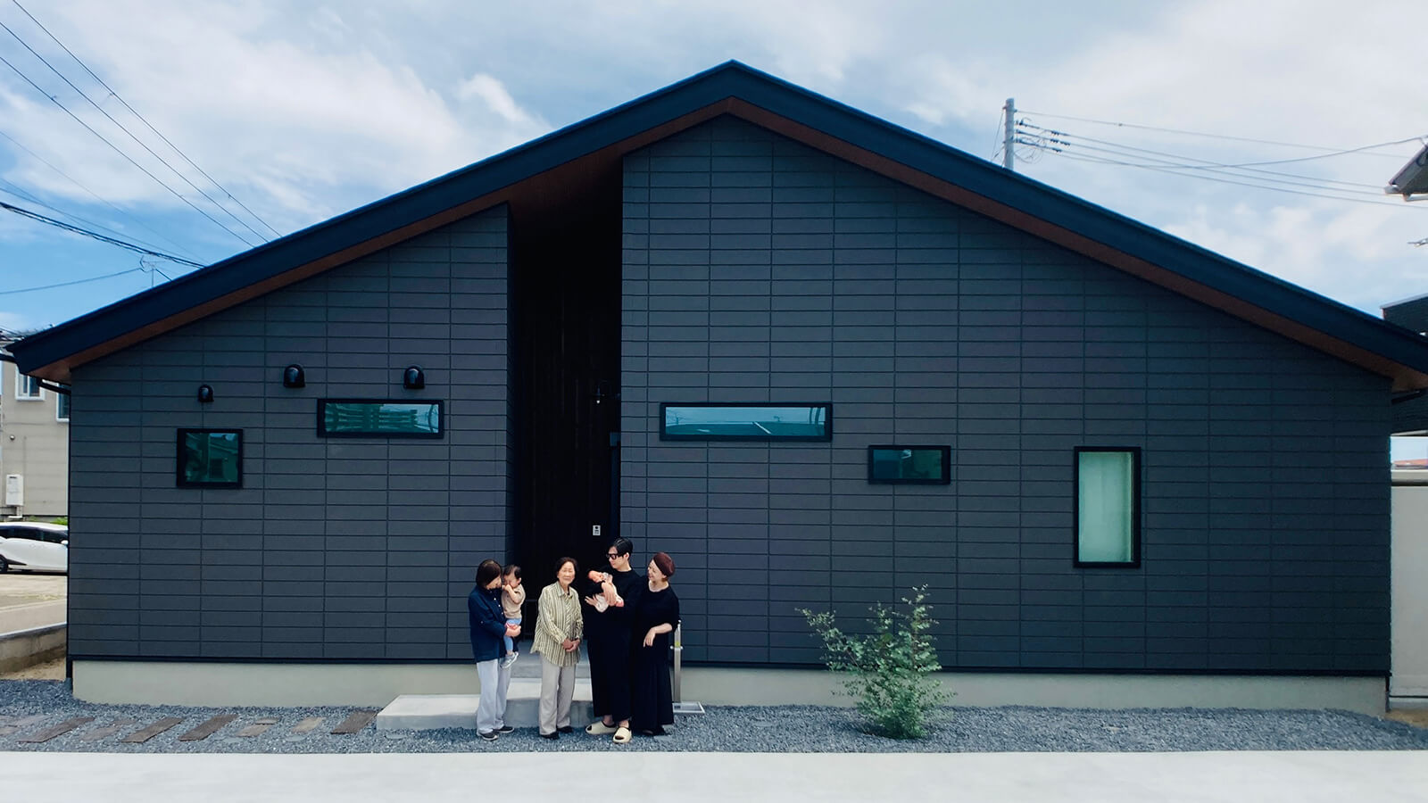 4世代が同居する39.8坪の平屋。4世代が快適に暮らすための冷暖房計画や生活導線を第一に考え、ランニングコストを削減したZEH住宅です。