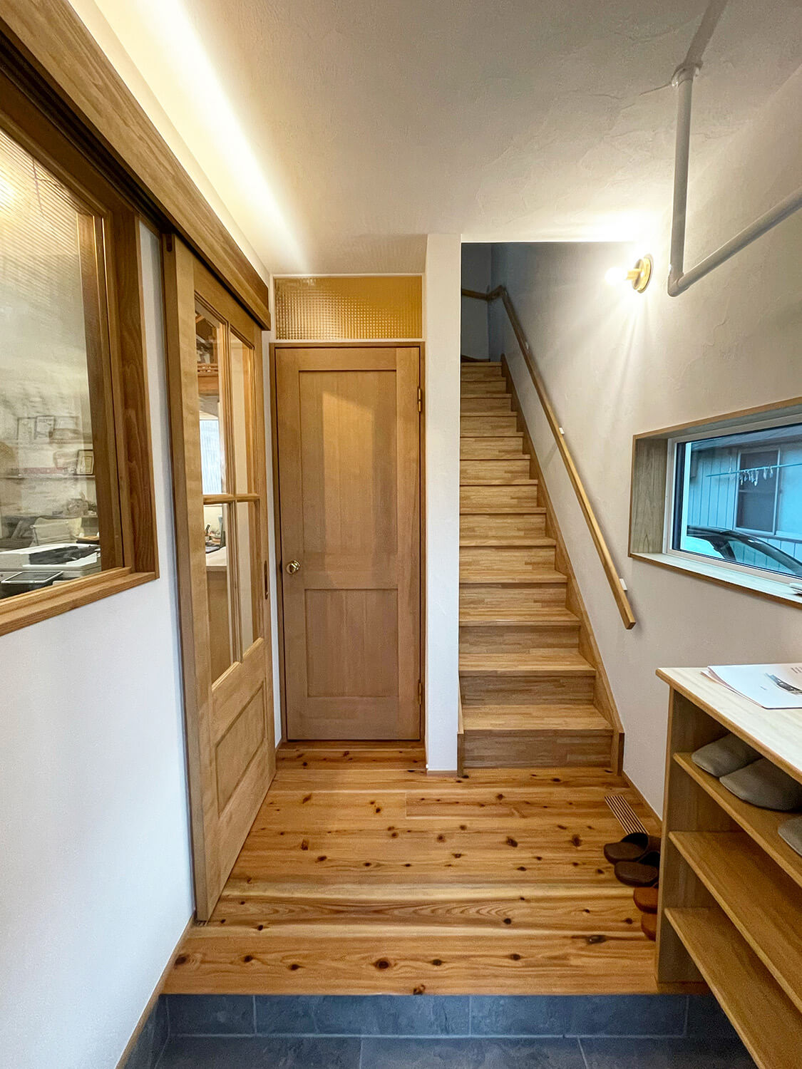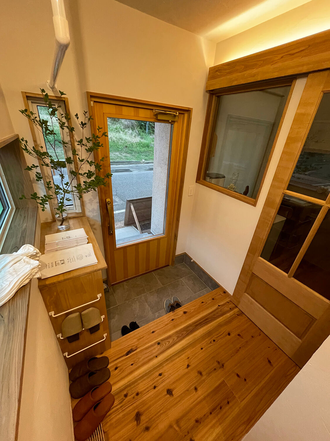 内外壁は、そとん壁を使用し一生涯持つ塗り壁の優しさと風合いに仕上げ、床材は浮造りの杉床を使用し温かみと肌触りの良さを是非素足で体感して頂きたいです。