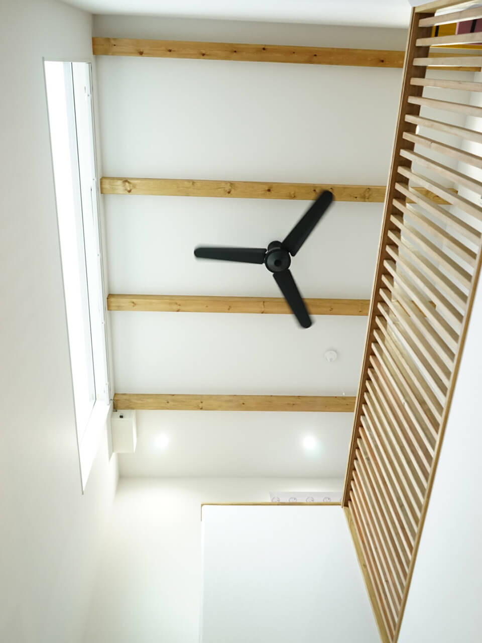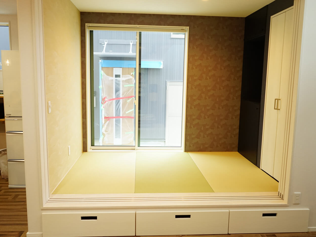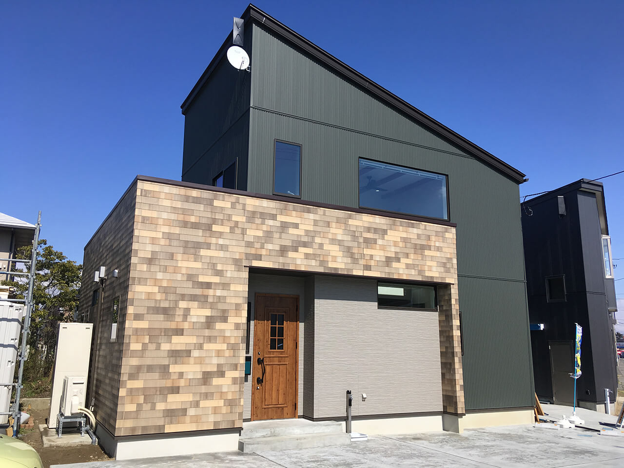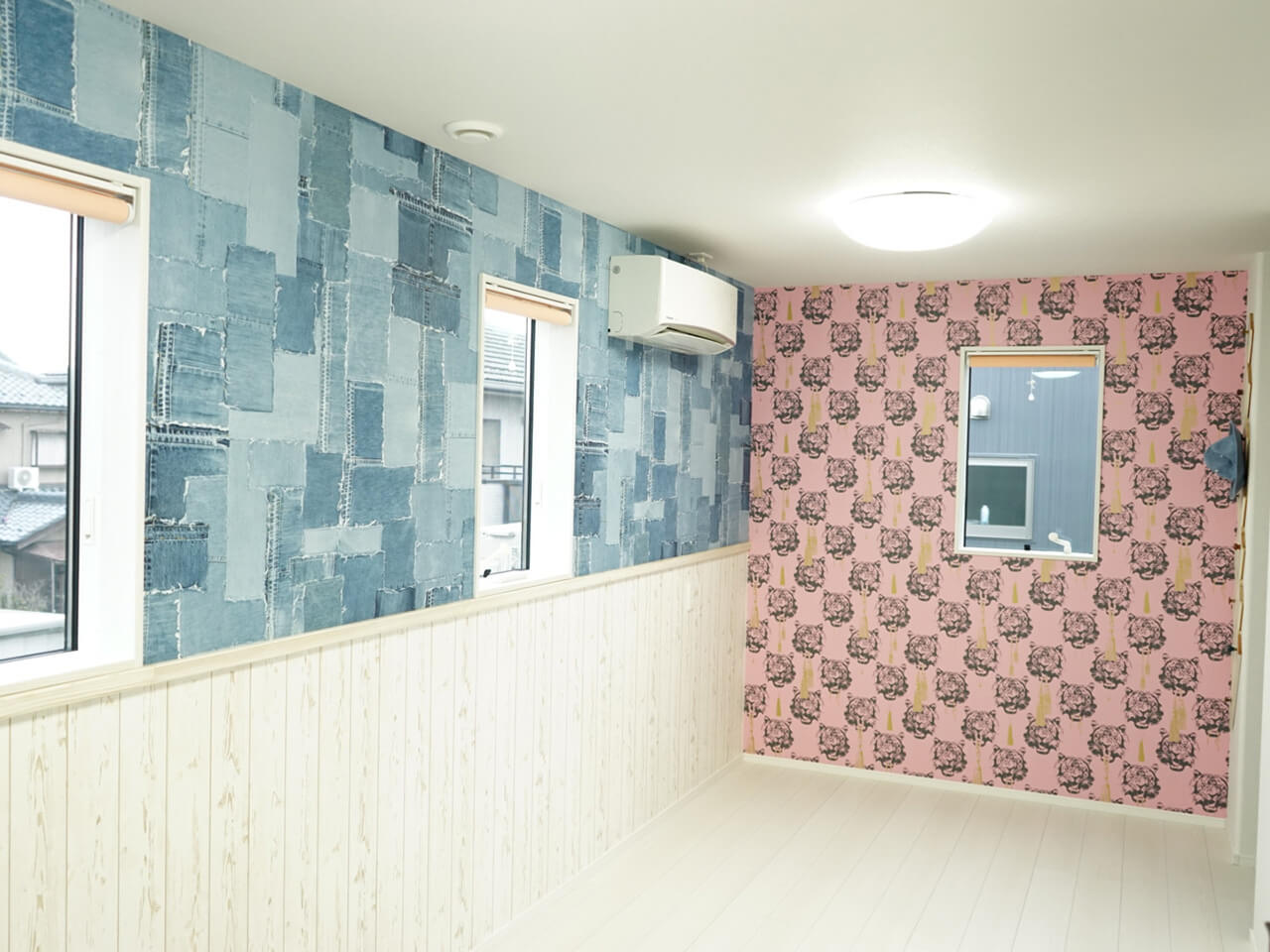 家族3人+犬3匹のそれぞれのライフスタイルに合わせ、間取りとデザインを変えました。かつZEH住宅にすることで夏は涼しく冬は暖かく、家の何処に居ても温度差の少ない一体感のある住宅です。ポップな配色で構成されている空間達ですが、羽目板やカウンター材・表しの梁などの木材が協調性を出し、まとまりのある空間になっています。