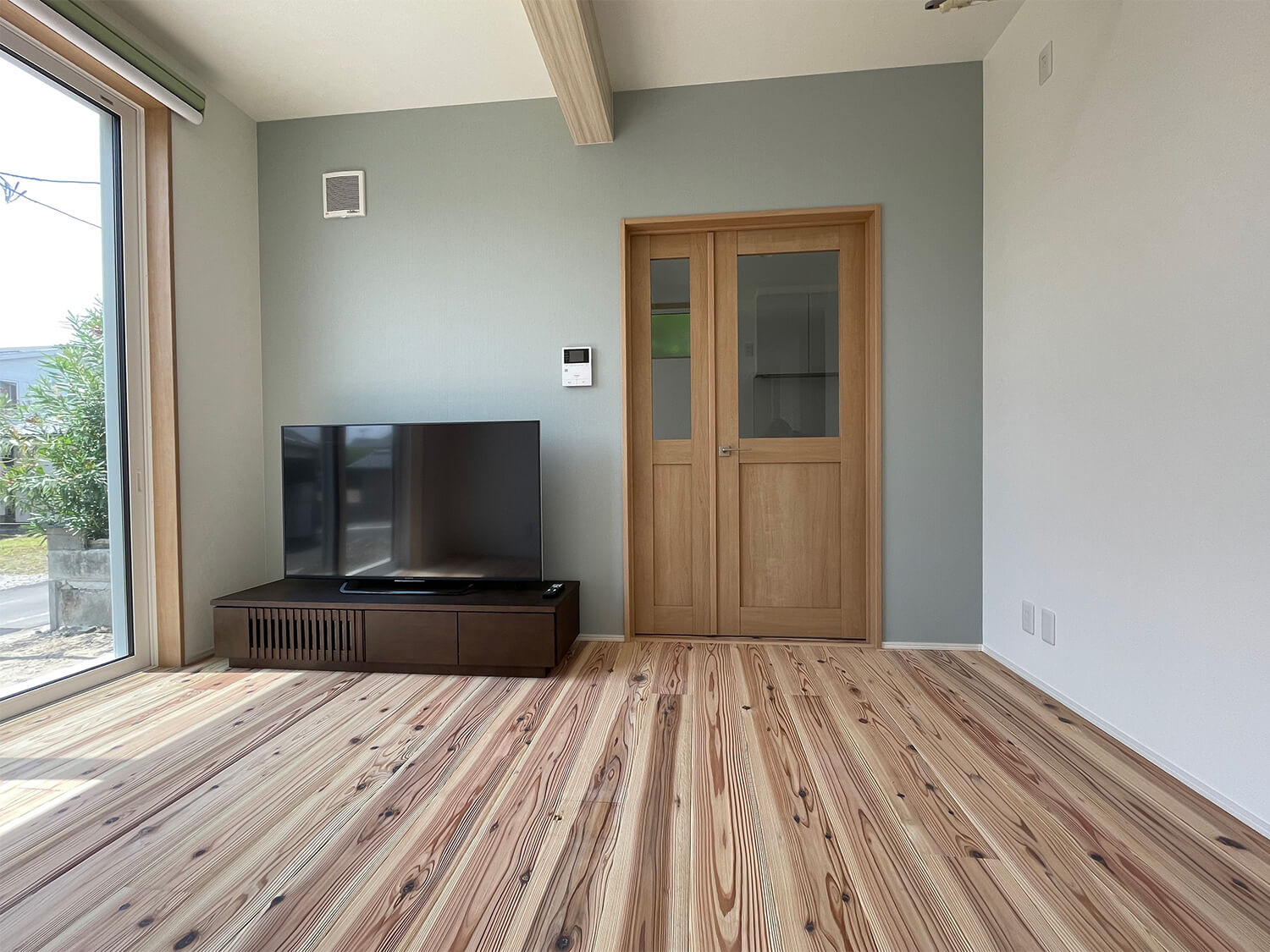 断熱性能と耐震性にとことん拘った家。断熱材は、外断熱と充填断熱のW断熱(LIXIL SW工法DUAL)にて弊社のできる限りの断熱性能を実現。耐震性能は、許容応力度計算の耐震等級3を取得。性能数値のみならず、床板は杉の浮造り仕上げを採用し温もりが格別です。