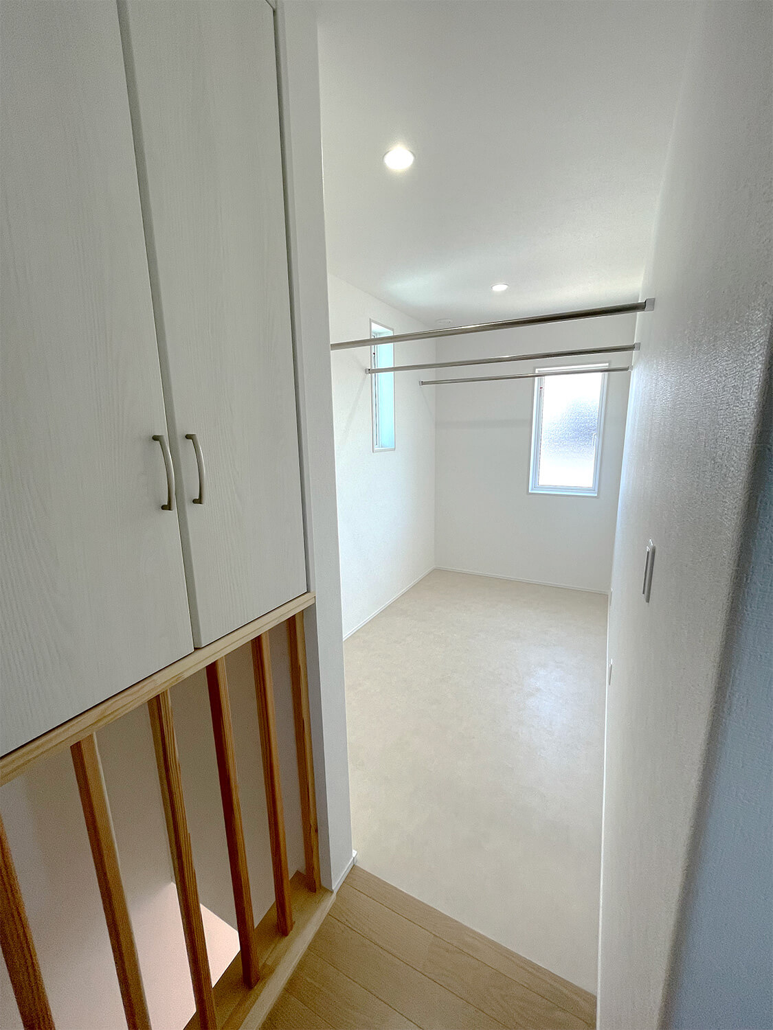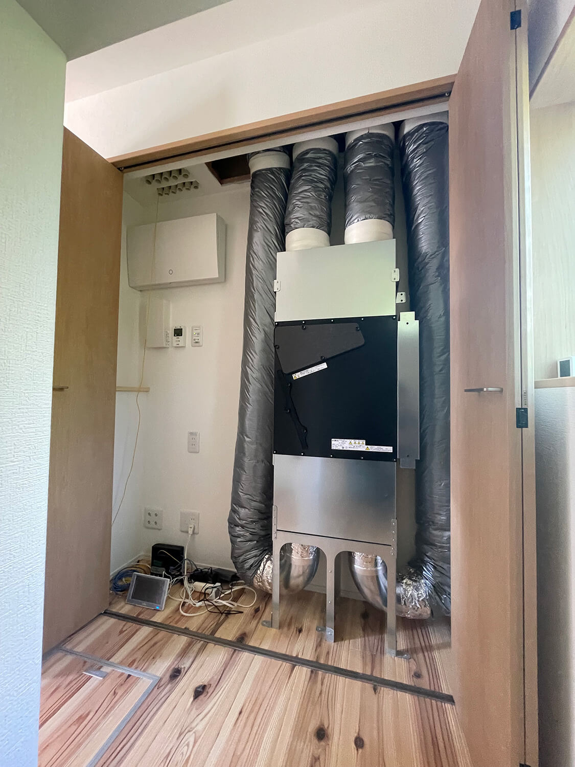 また、南と西の窓には外付けシェードを採用し夏の日差し対策もバッチリ。電気配線も将来を見越して太陽光パネル増設や蓄電池が追加できるように配線したり、ダクト式換気扇や分電盤のメンテナンスがし易いように機械室を設けました。