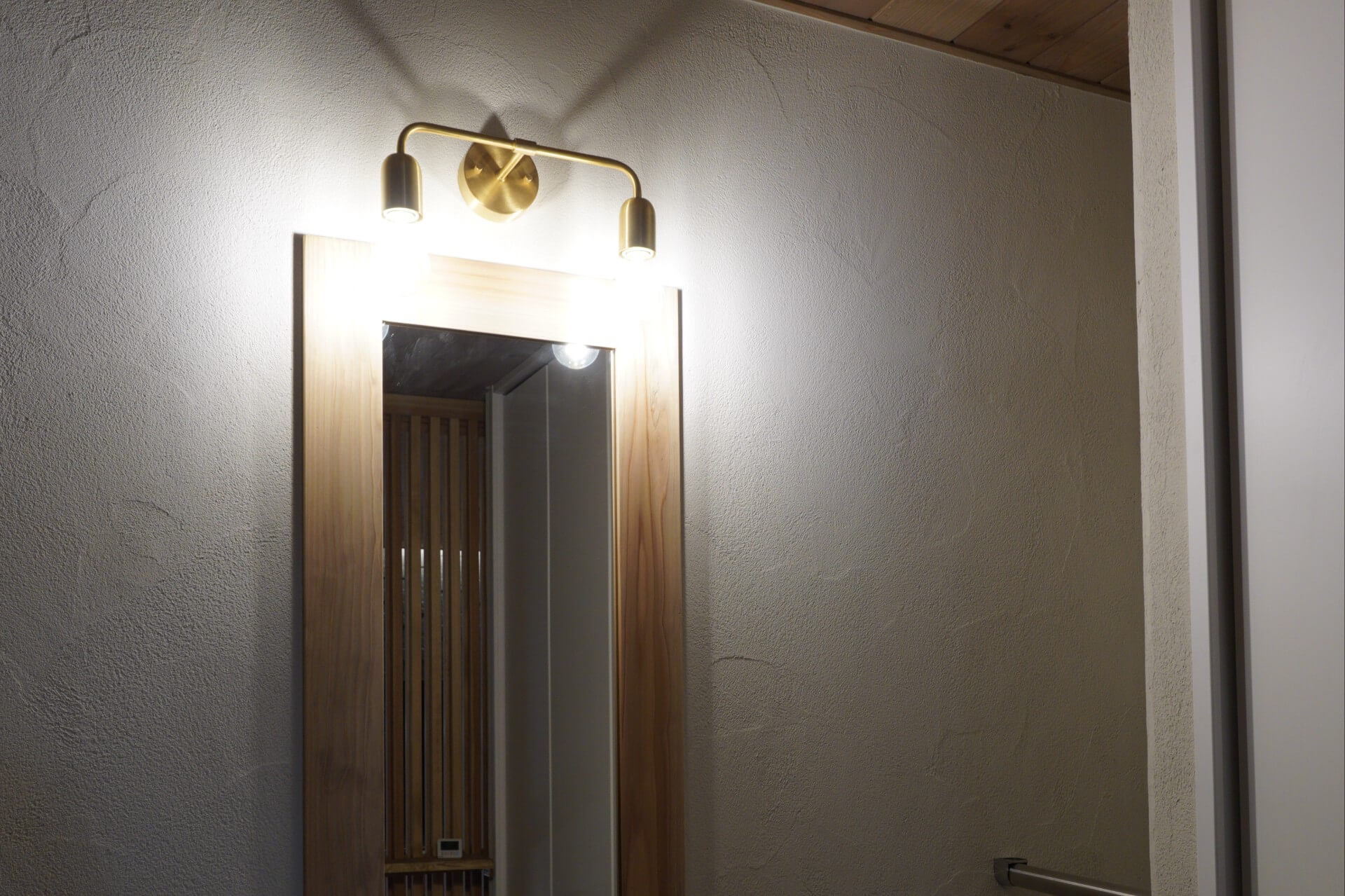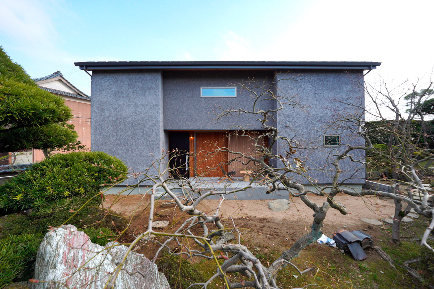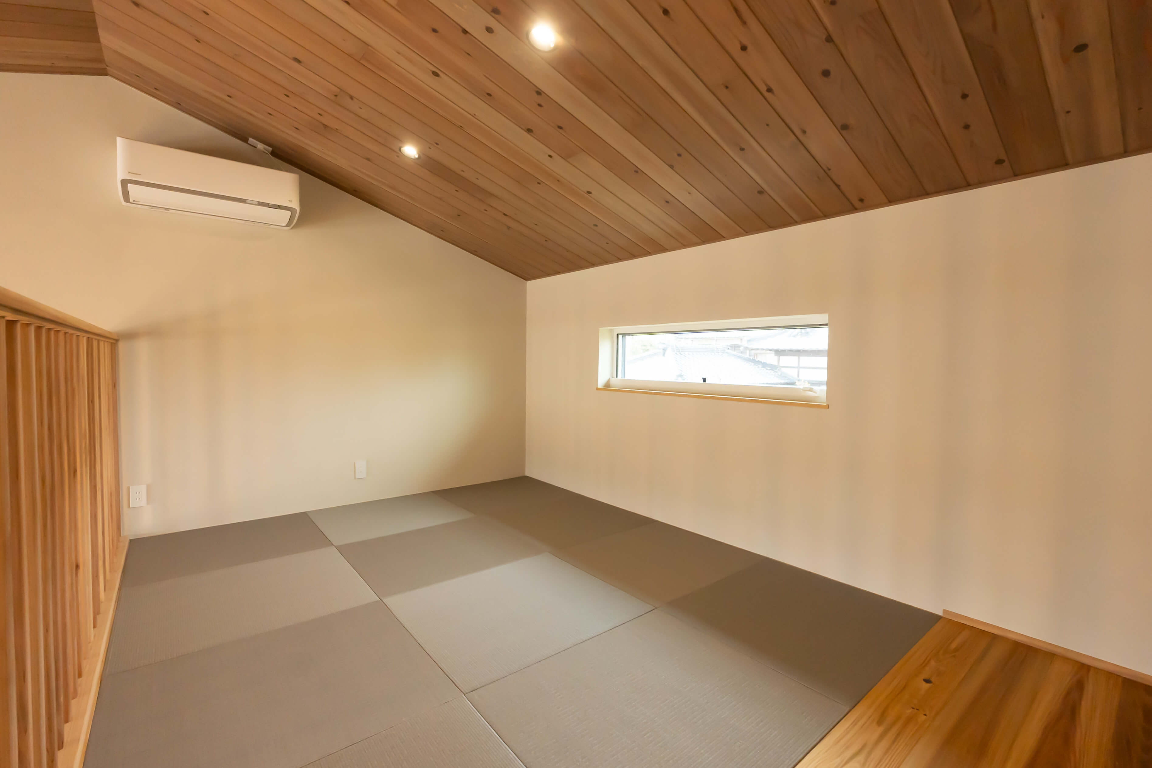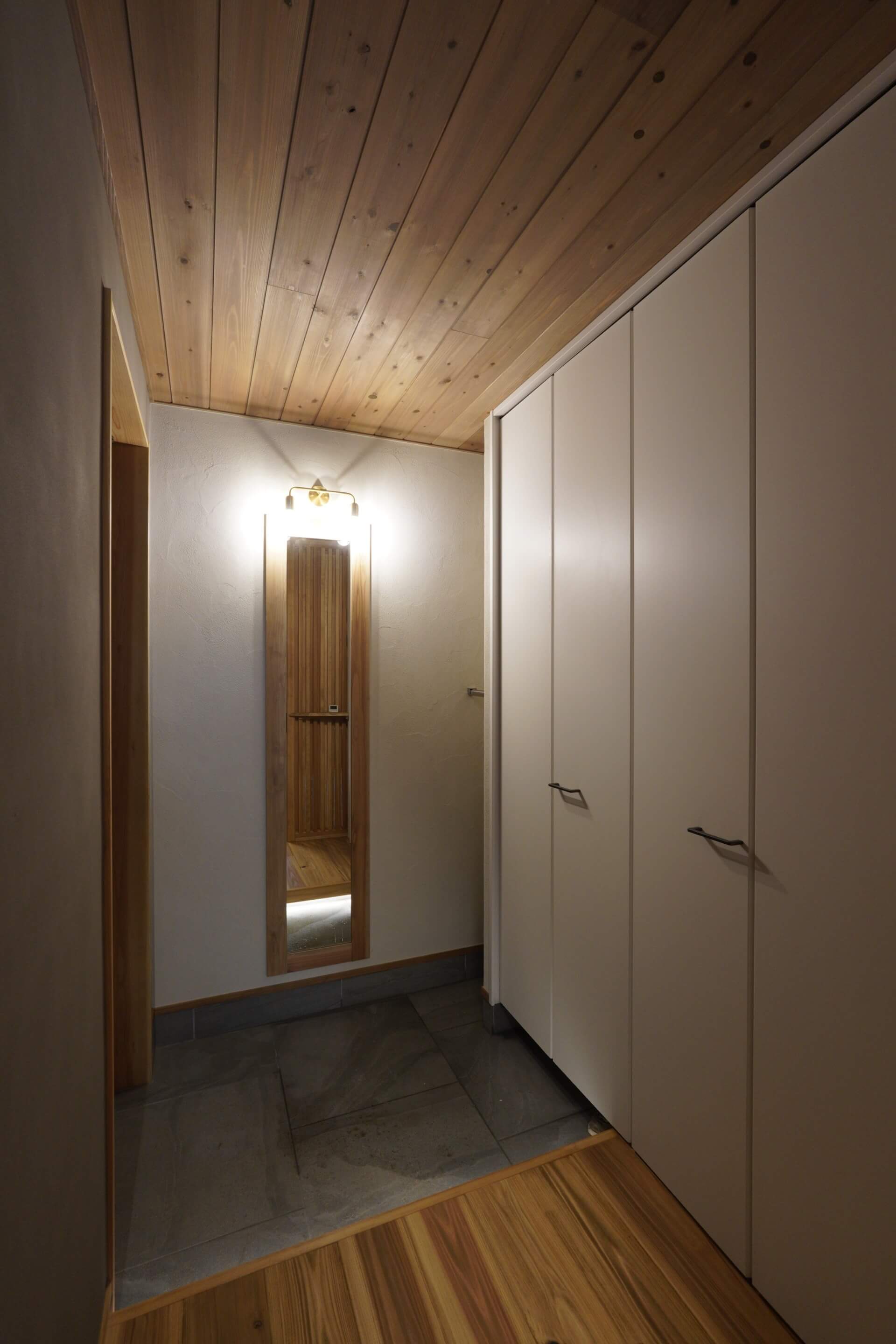 内外装は火山灰シラスが原料のそとん壁を使用し、風合いだけでなく耐久性、防水性、断熱性、調湿性に優れているため、より快適な空間を実現しています。また、壁だけでなく床や天井、格子ドアや収納扉など、随所に無垢材をふんだんに使い、家全体が自然素材の優しい風合いで包まれています。